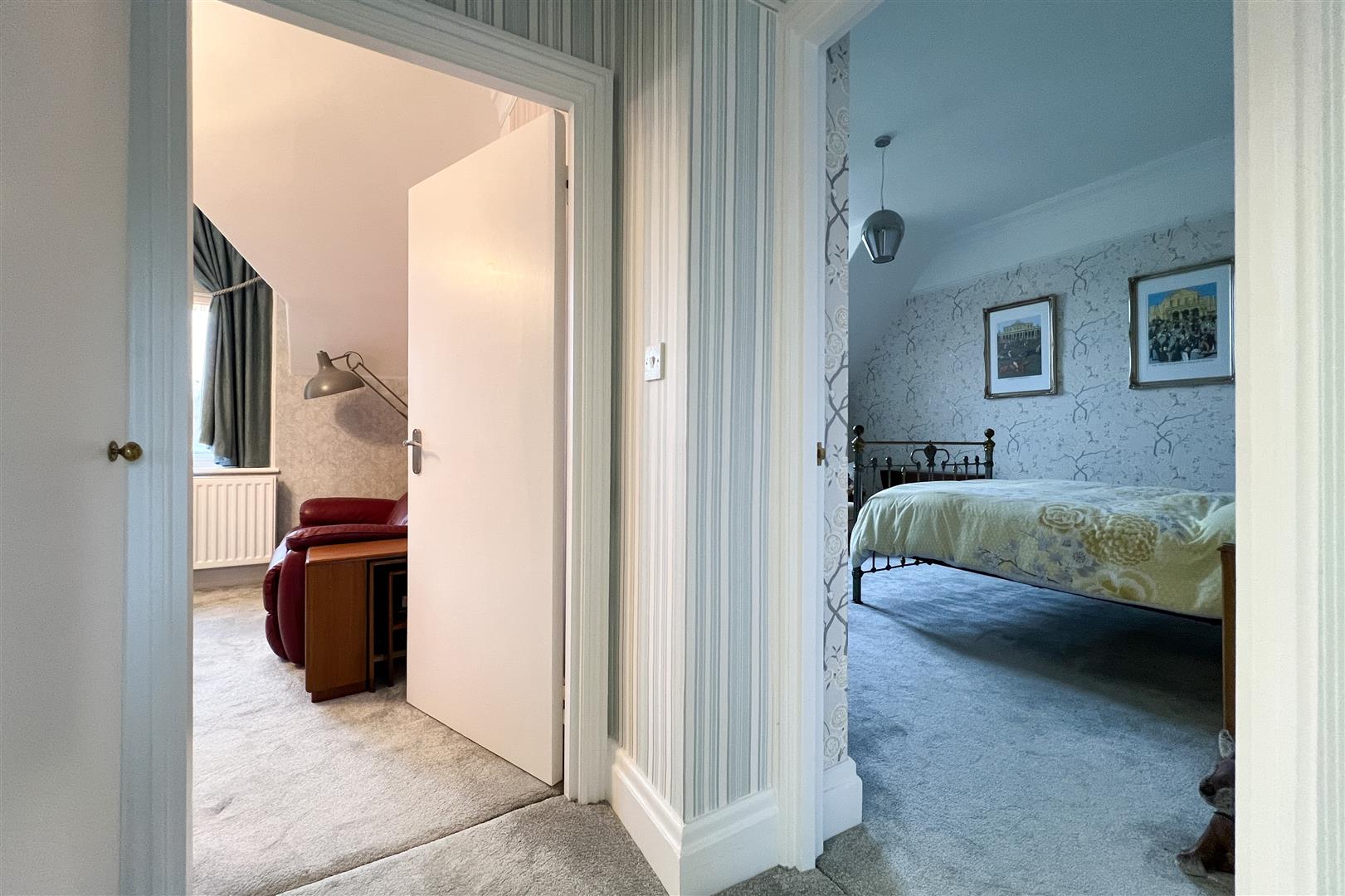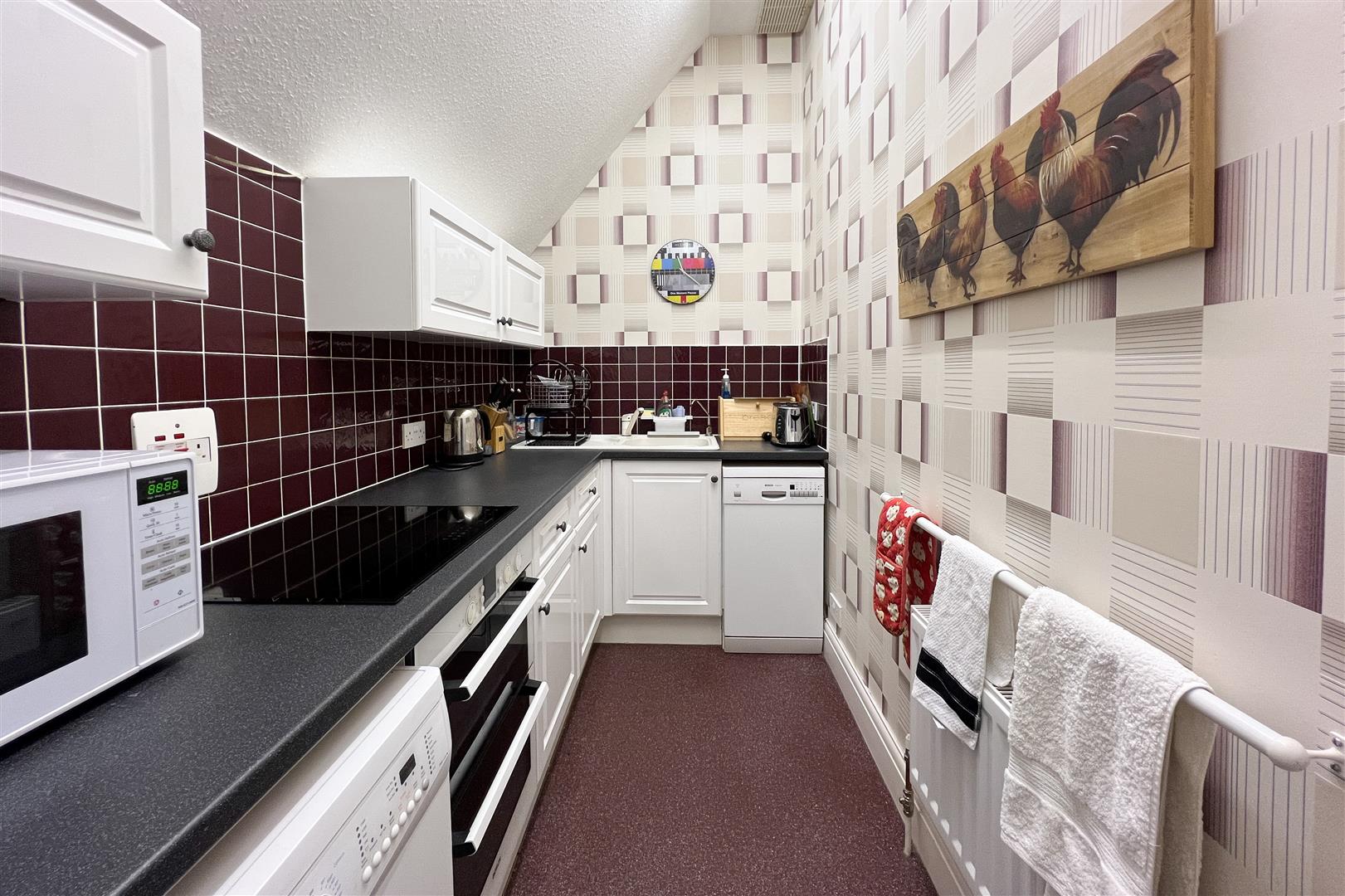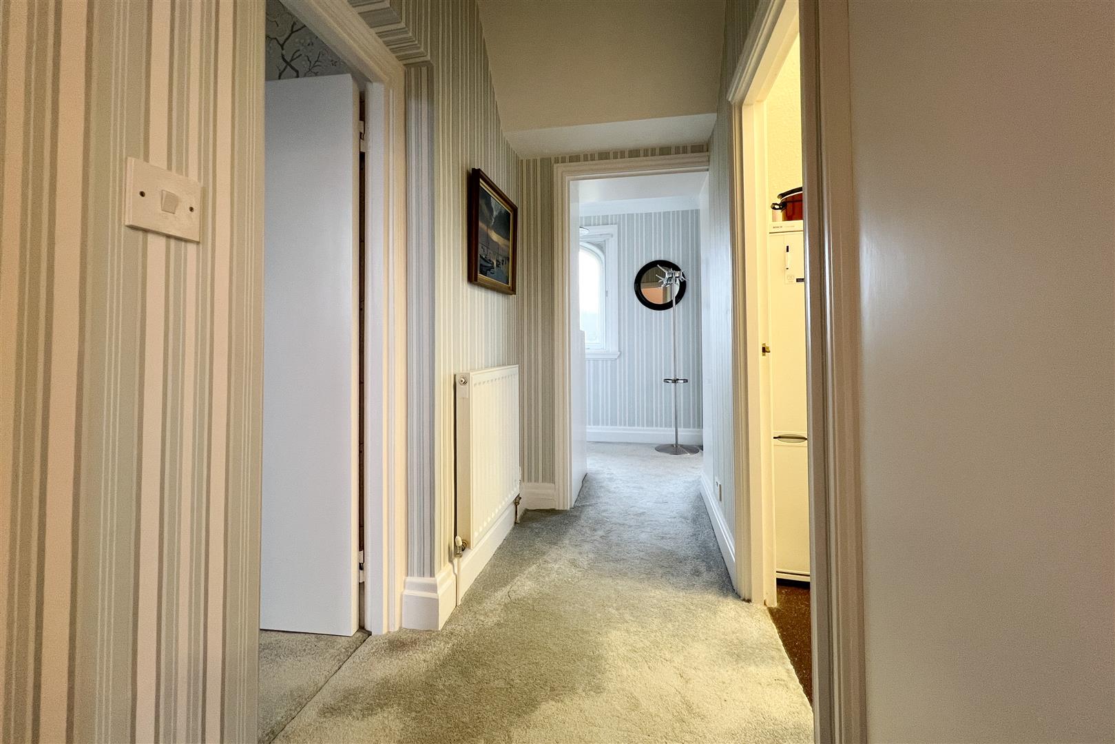 This well-proportioned second floor flat has been improved by the present owners and features far reaching views to the front and the rear. Upon entering this historic building, the grandeur and proportions are immediately evident, with a large reception hall, original returning staircase and a quite stunning communal sitting room. The front door of the flat leads into a ‘L’ shaped entrance hall with views to the front and which provides access to all rooms. The sitting room, to the rear of the flat features tall wide window providing views over the valley, lake and bridge beyond. The double bedroom with fitted wardrobes and storage is situated quietly to the rear of the building. Both the bathroom and kitchen are well appointed with modern fittings.