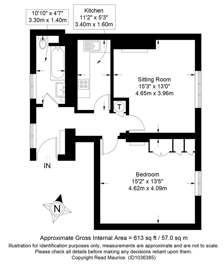 The front door of the flat leads into a ‘L’ shaped entrance hall with views to the front and which provides access to all rooms. The sitting room, to the rear of the flat features tall wide window providing views over the valley, lake and bridge beyond. The double bedroom with fitted wardrobes and storage is situated quietly to the rear of the building. Both the bathroom and kitchen are well appointed with modern fittings.
