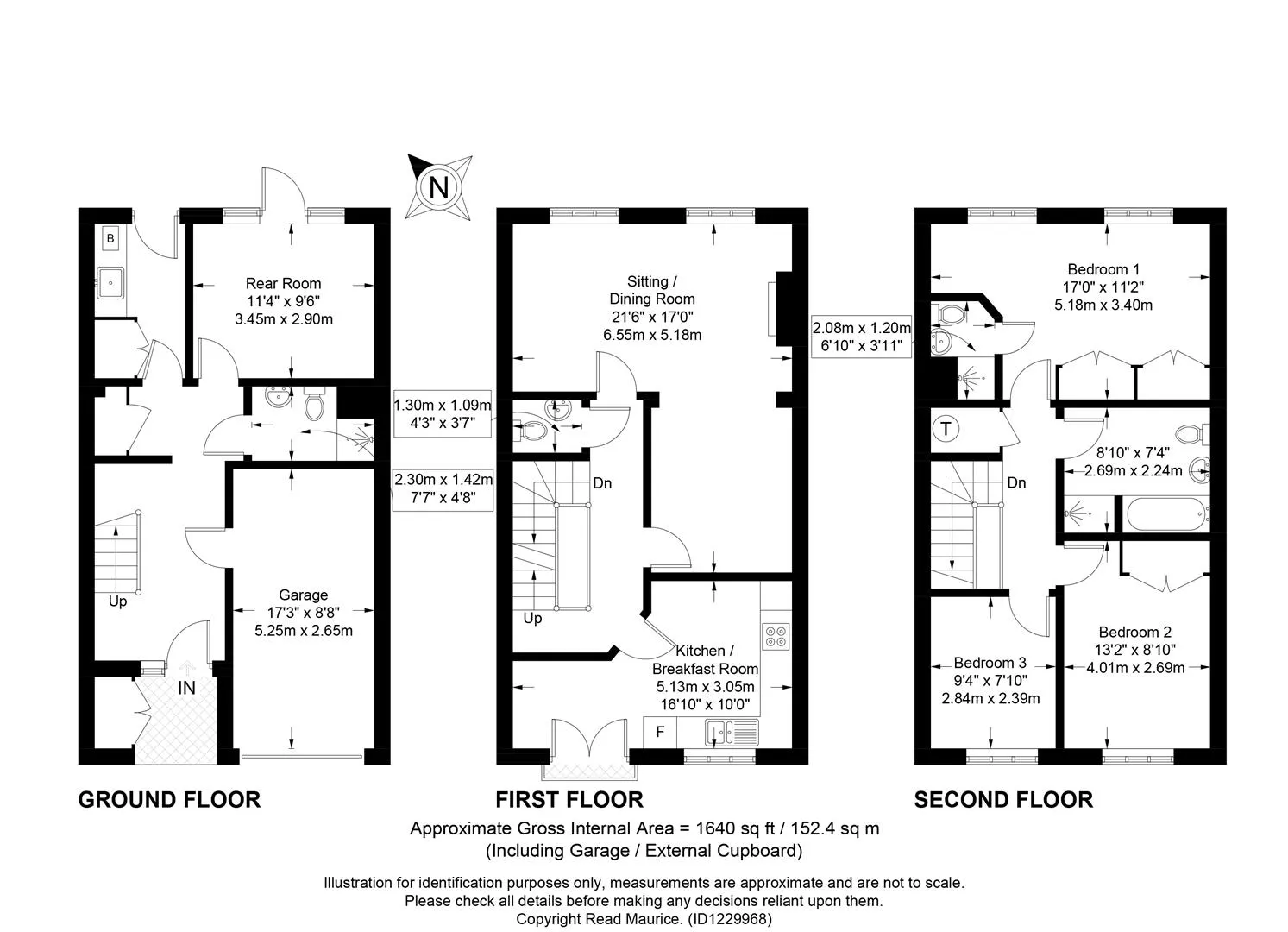 The second floor is occupied by the principal bedroom with ensuite shower room, two further bedrooms and a family bathroom.