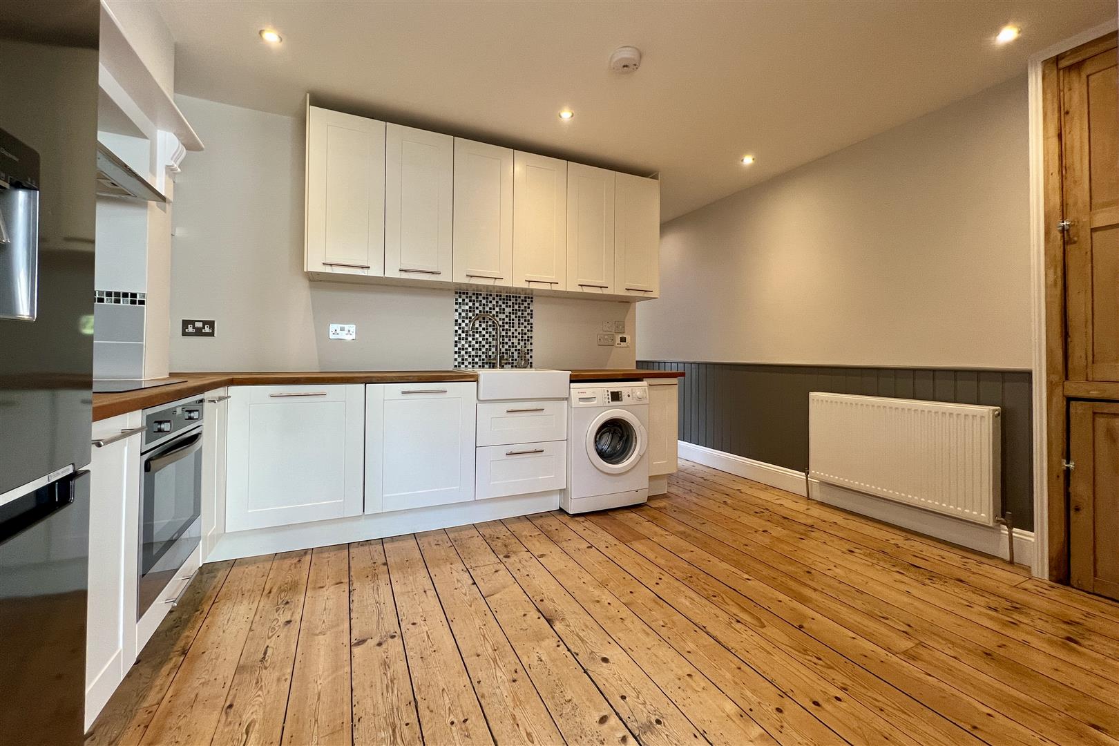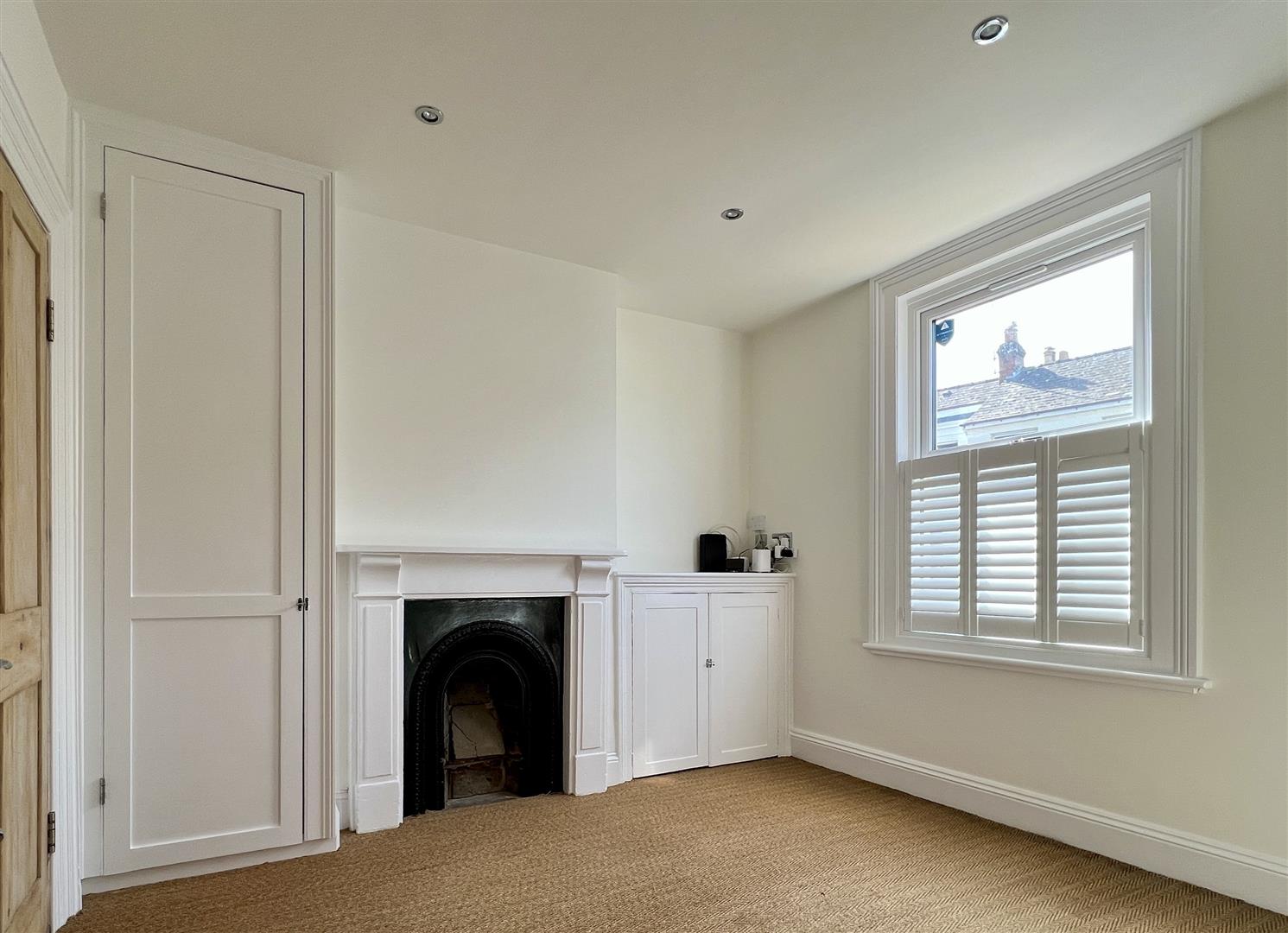 Entering the house via the front door you are welcomed into an entrance hall with partly panelled walls and a stripped wood floor. To the front of the house is a front room which has a window with half plantation blind and a feature fireplace surround. This flexible room can be a sitting room, dining room or a third bedroom. A door leads to a cloakroom with W.C., basin and store room which retains the shower tray and plumbing to return it to a shower, making the room ensuite.