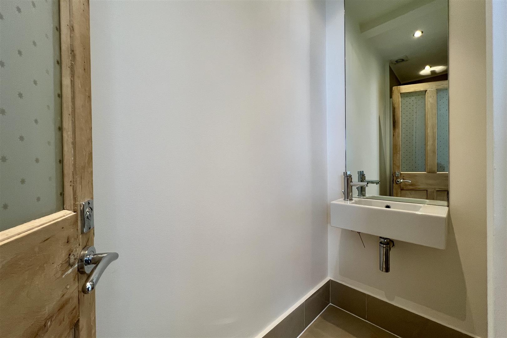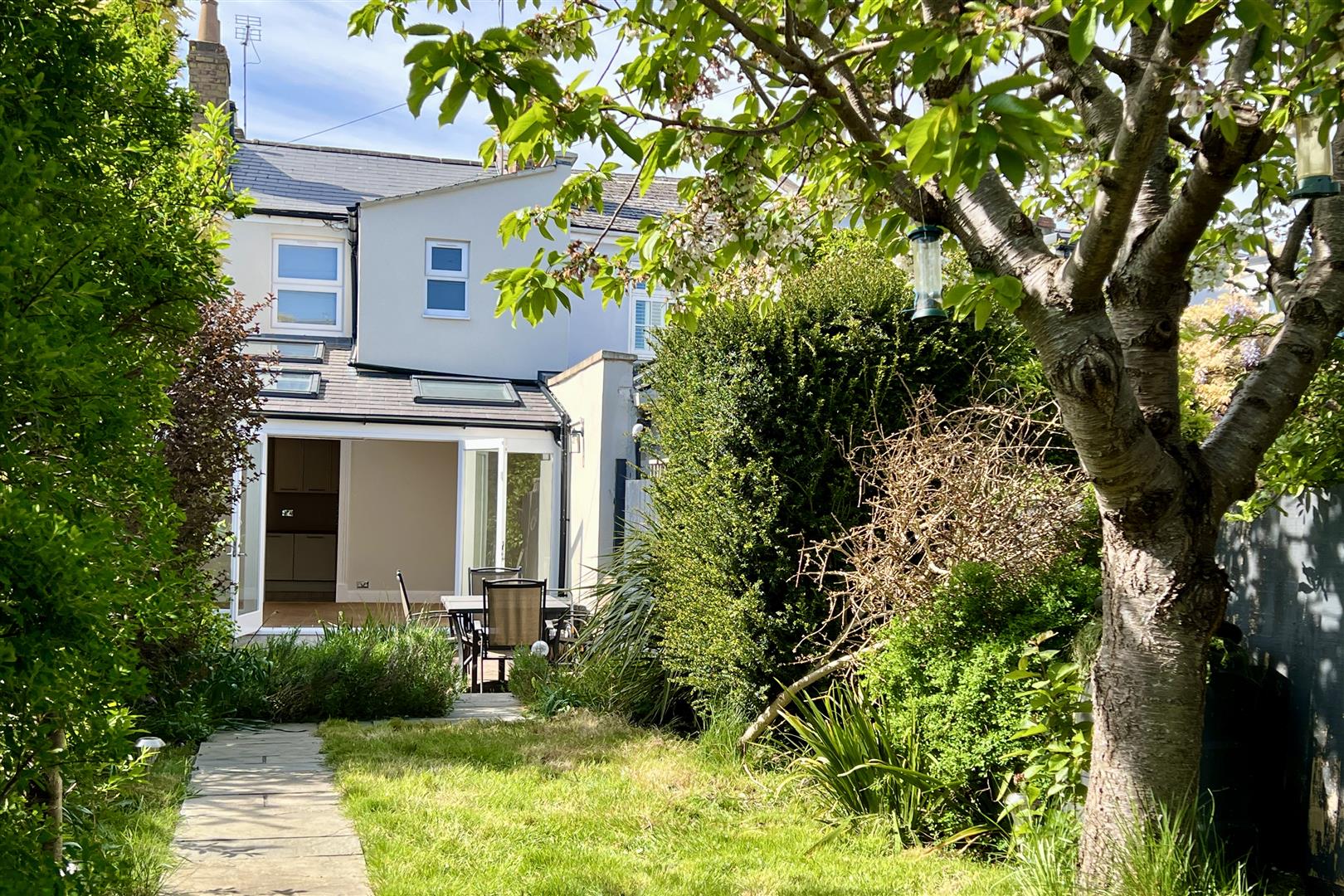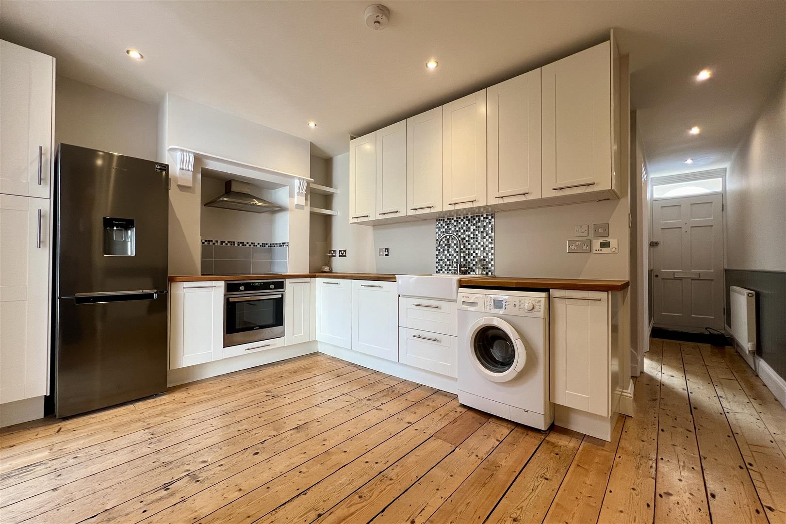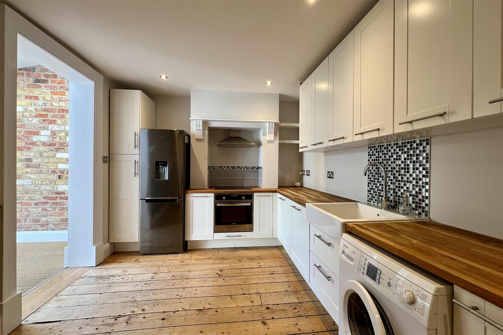 The entrance hall opens into a good sized kitchen/breakfast room which is fitted with modern units and again has a stripped wooden floor. A open access from the kitchen leads into the rear sitting room which is bathed in natural light having several roof windows, floor to ceiling windows and glazed double doors leading into the garden.