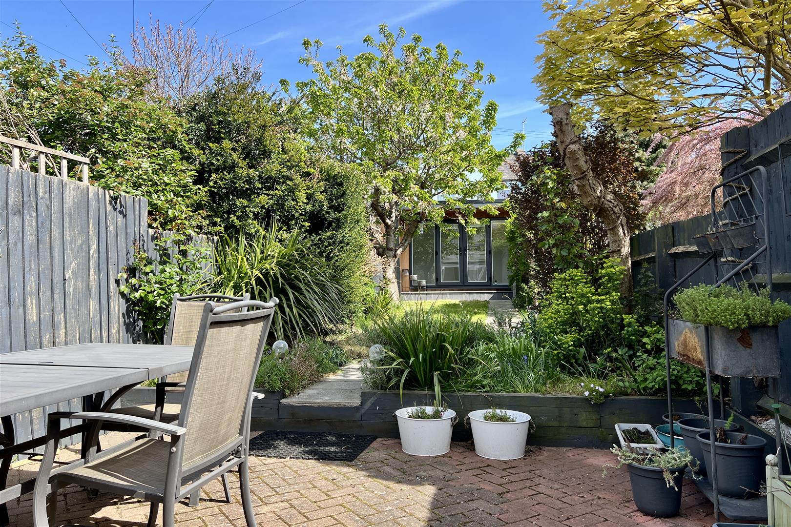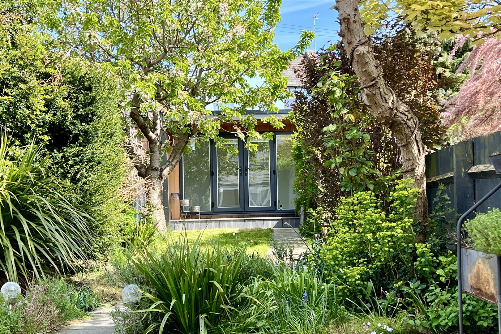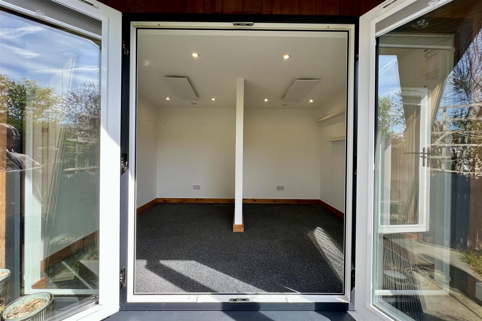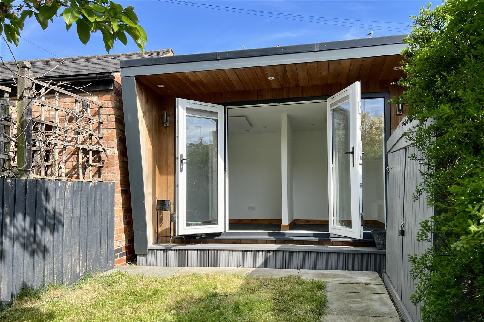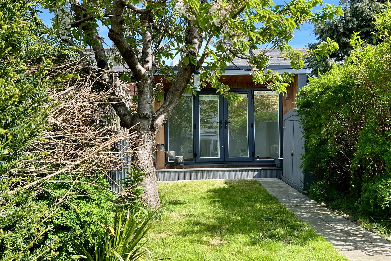 The rear garden (c.59’x14’) is enclosed with a block paved patio adjoining the house. a step up and pathway leads to a lawn with established shrubs and a useful garden tool store. At the end is a fantastic GARDEN ROOM/HOME OFFICE (c.11’4×8,8) which creates an extra versatile space with mains electricity and wired internet connection.