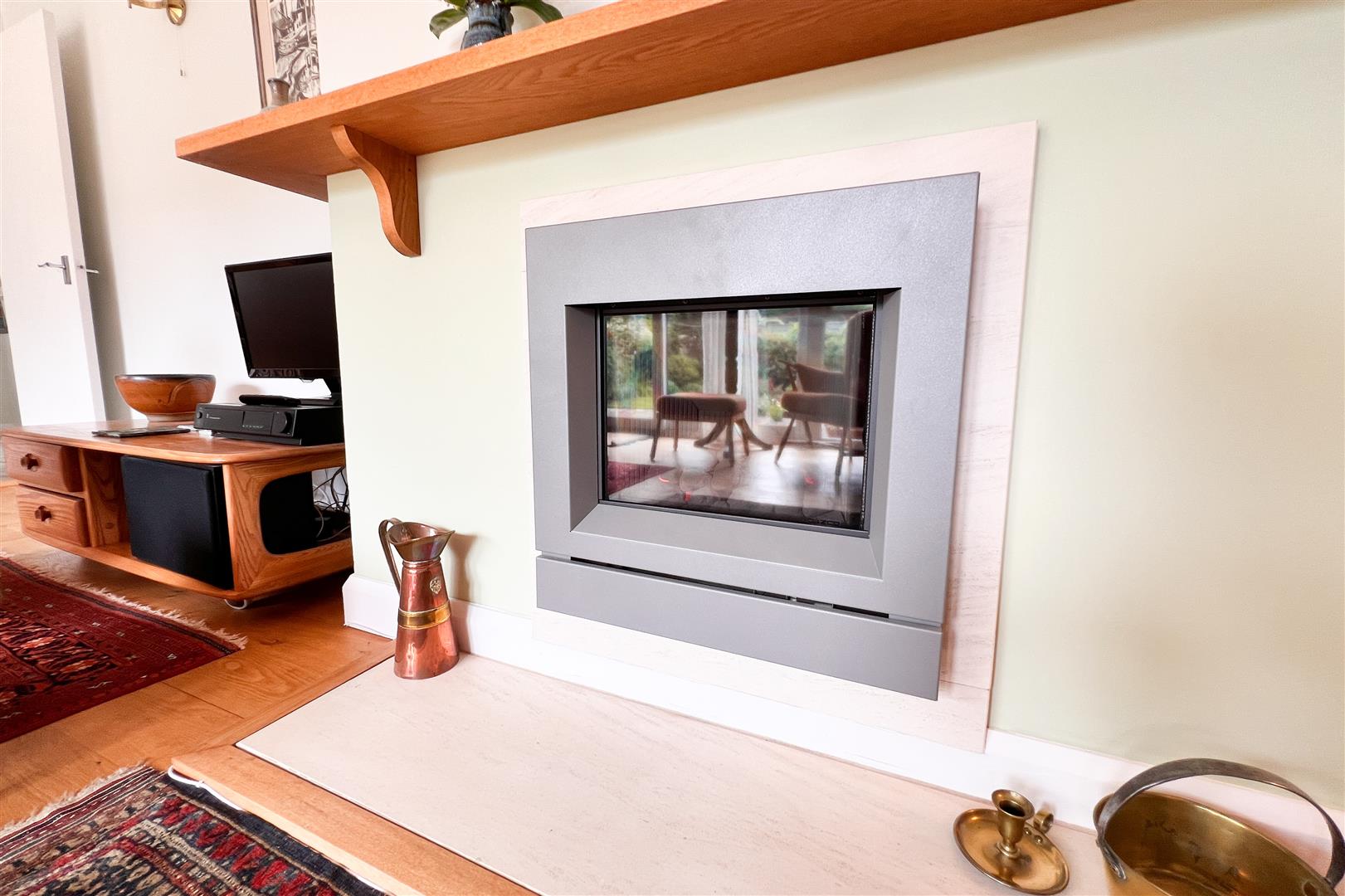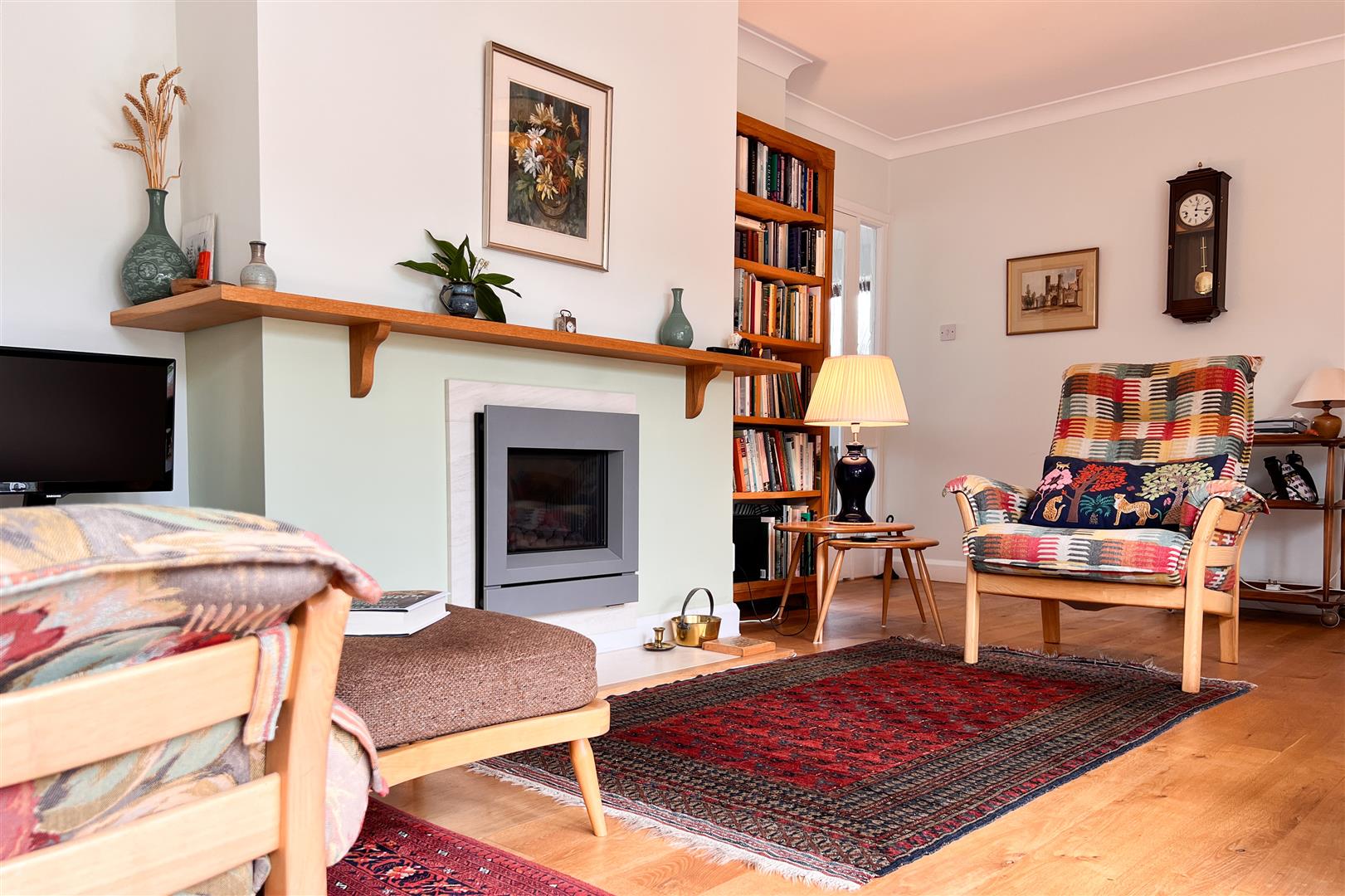 The main living room has large, glazed doors leading to the garden. 33’ in length provides able space for a generous sitting area which has the bonus of an inset contemporary living flame coal effect fire. There is also space for dining and a particularly useful office area.