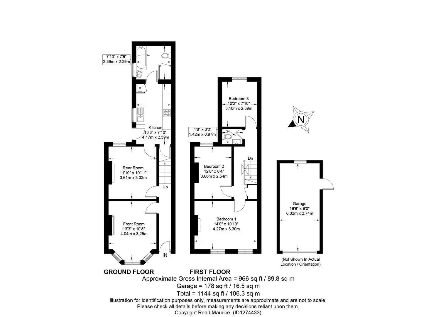 The ground floor comprises an entrance hall, a front sitting room with bay window, a rear reception room, a fitted kitchen, and a ground floor bathroom. To the first floor, there is a central landing, a cloakroom, and three bedrooms.