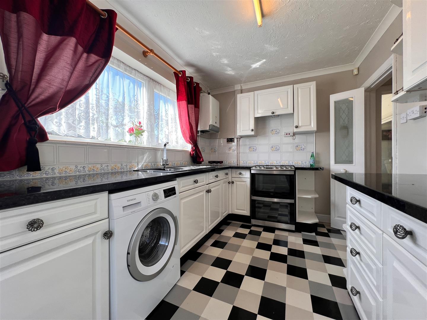 The kitchen has an array of fitted units and space for domestic appliances. It enjoys a view over the garden and there is a side door providing access to the outside. There is also a cloakroom.