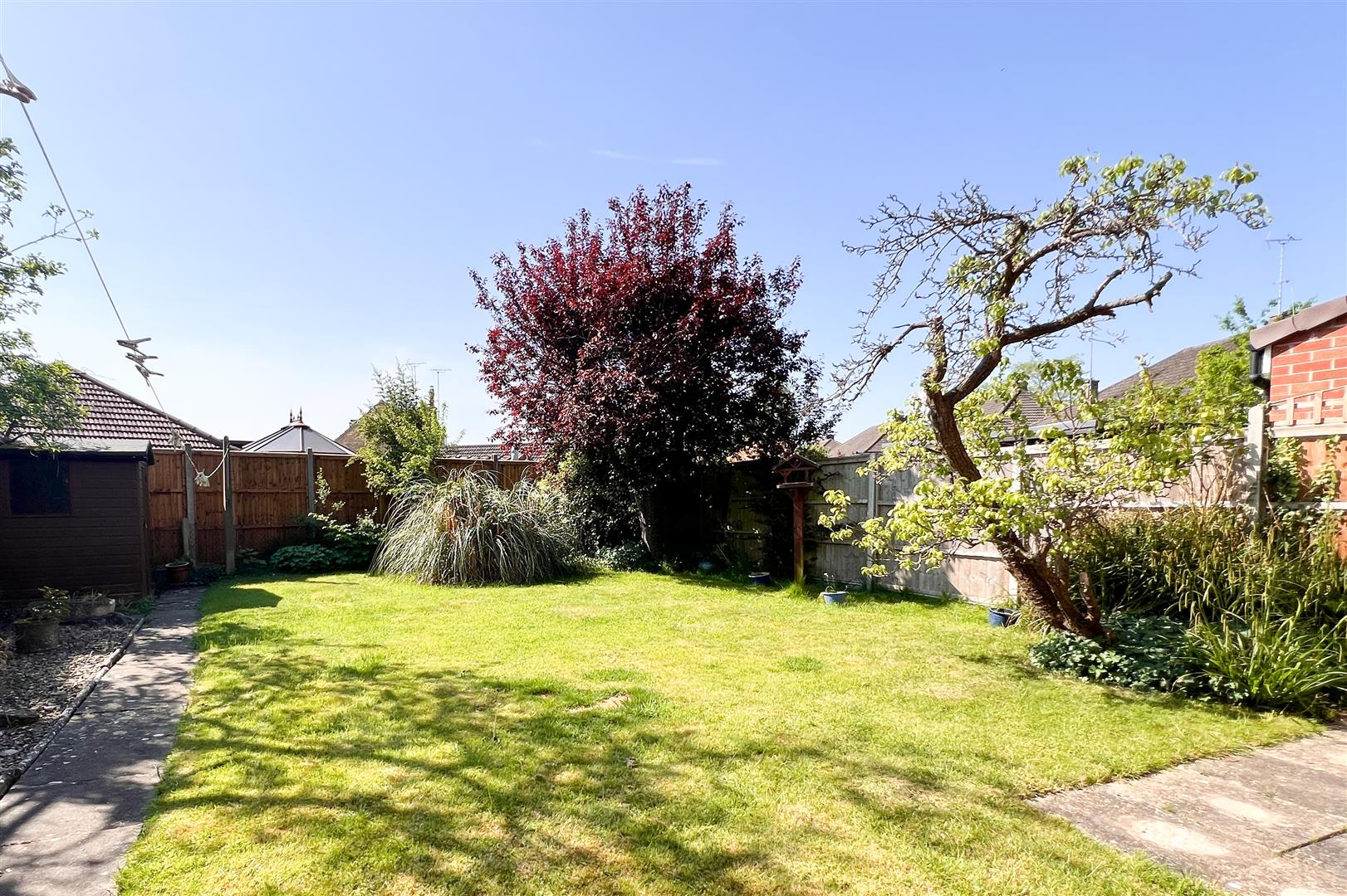 To the rear is an enclosed garden 43′ x 33′ (13m x 10m) which enjoys a south facing aspect and is enclosed. It is laid to lawn with a paved patio and a garden shed. There is also a particularly useful store cupboard, and a side door provides access to the integral garage which has opening wooden doors and a window. Gated side access provides a degree of security.