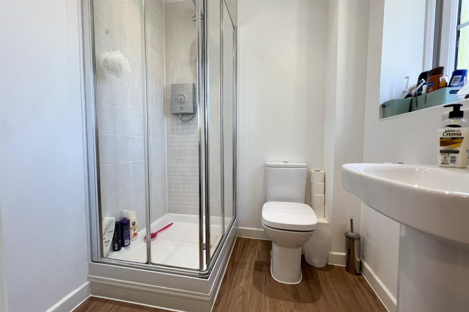 The property is very modern in design with a sitting room, fully integrated kitchen with dining area and cloakroom. Upstairs are three bedrooms the main bedroom has the added benefit of an en suite shower. There is a lawned area to the front enclosed by railings. To the side is a driveway leading to the garage. There is also a 7.5 kw charger.
