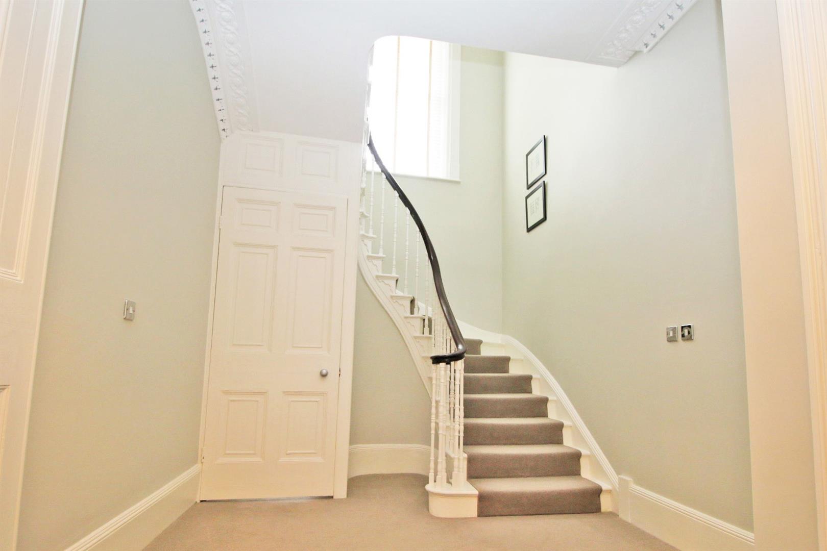 The property has its own private entrance via a portico which leads to the front door and the accommodation is stylishly arranged over two floors and displays a wealth of original features including decorative ceiling mouldings, tall ceilings and ornate woodwork. The wide entrance hall leads to the staircase of the original house which sweeps up to the first floor. In addition to the ground floor is an impressive reception room with floor to ceiling windows overlooking the gardens, cloakroom and a fitted kitchen / breakfast room.