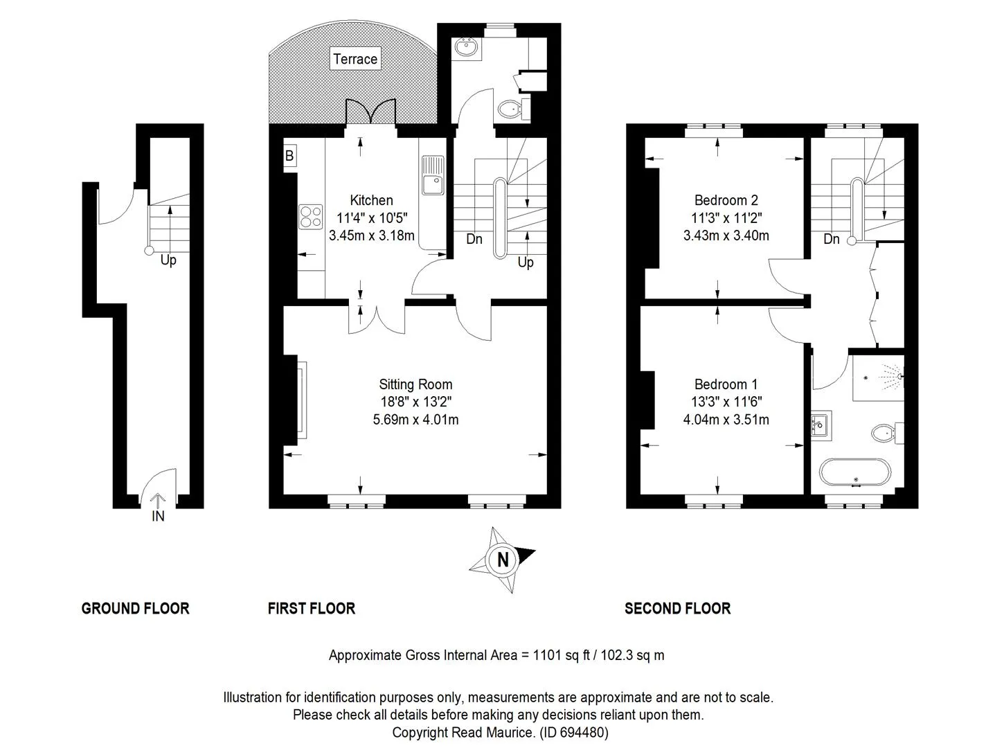 Stairs from the first floor lead to the second floor landing, off which are two double bedrooms and a modern fitted bathroom with a white suite comprising a freestanding roll top bath, W.C., contemporary basin and a good sized shower cubicle. Off the landing are two useful storage cupboards.