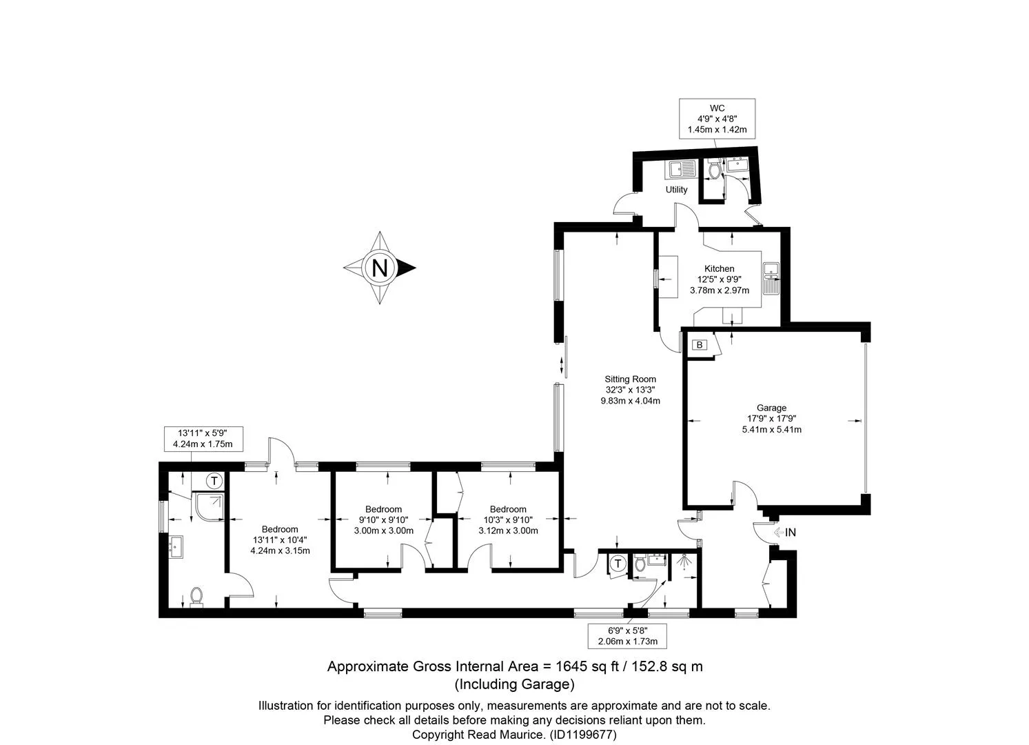 All three bedrooms are positioned to the side of the main living room with the main bedroom having an en suite shower room and a door to the garden. There is a further shower room for guests to use.