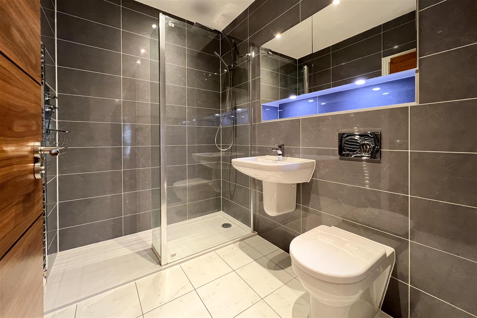 The two bedrooms are both double bedrooms, the master with two sets of built-in wardrobes with mirror fronted doors, hanging rails and drawers and en-suite bathroom with bath and walk-in shower. The second bedroom has built-in wardrobes and a window to rear along with a door to a small terrace. In addition it has an en-suite Jack and Jill shower room with a second door to the hall.